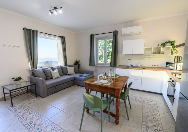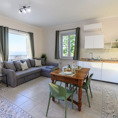 Appartamento confortevole e completamente ristrutturato, circondato dal verde, con terrazza panoramica vista mare
